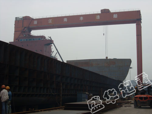 造船门式起重机是一种大起重量、大跨度、多功能、高效率的门式起重机械,专用于船坞(或船台)进行大型船体分段运输、对接及翻转作业。